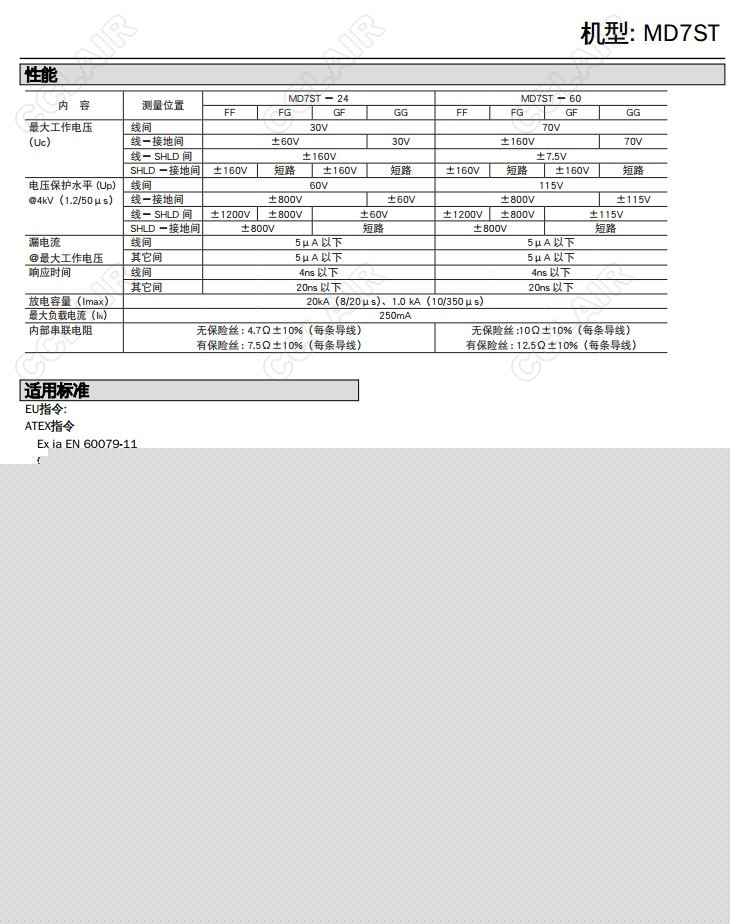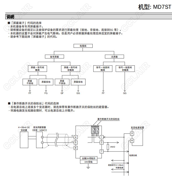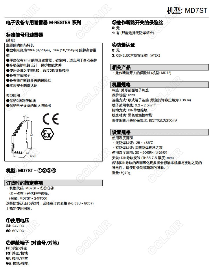 MD7ST,MD7ST-24FF00,MD7ST-24FF,MD7ST-60FF,MD7ST-24FG,MD7ST-60FG,4-20mA直流、脈沖信號(hào)用 超薄型避雷器