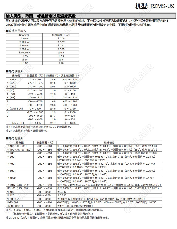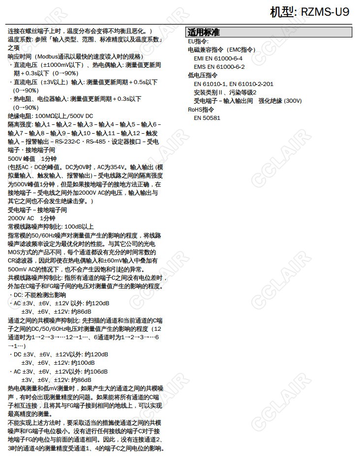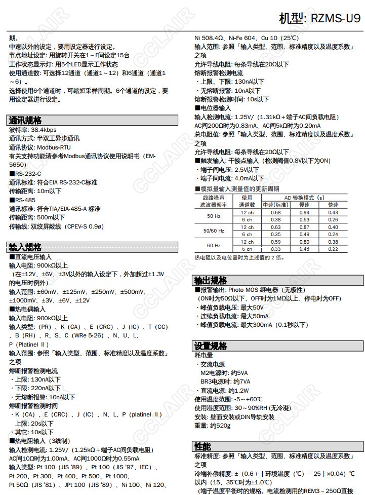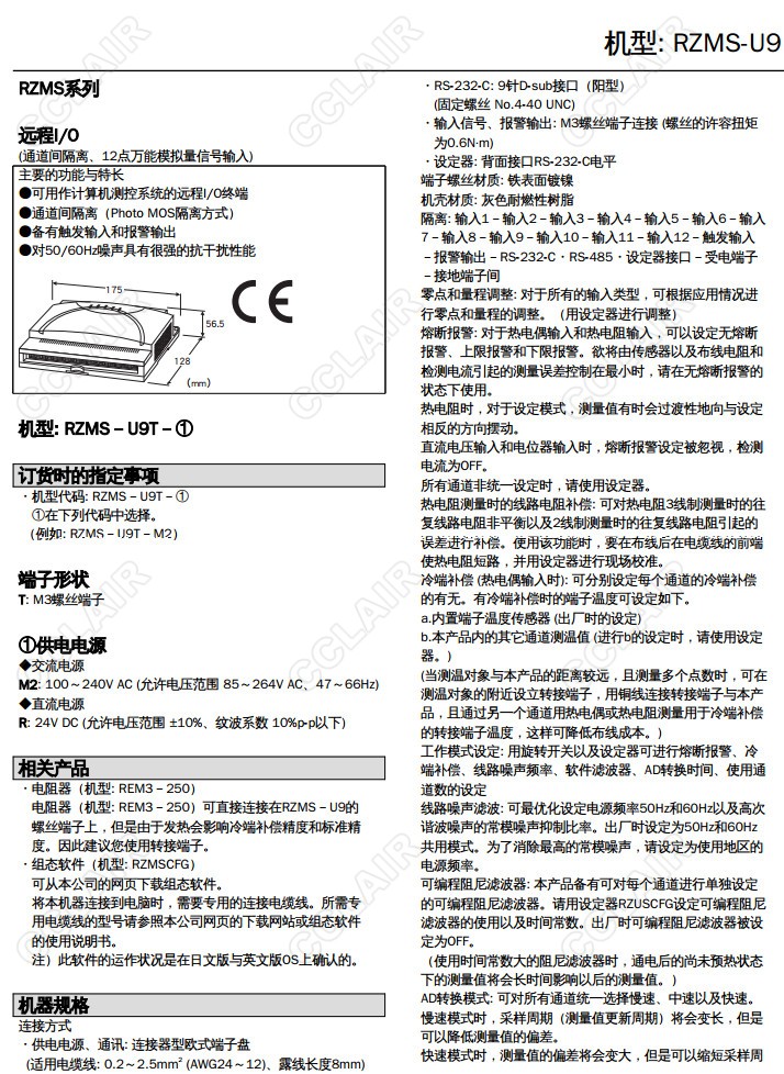 RZMS-U9,RZUS-U9T-M2,RZUS-U9T-R,12點萬能模擬量信號輸入