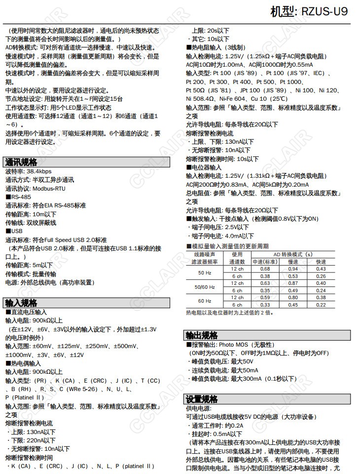 RZUS-U9,RZUS-U9T/MSR,12點(diǎn)萬(wàn)能模擬量信號(hào)輸入