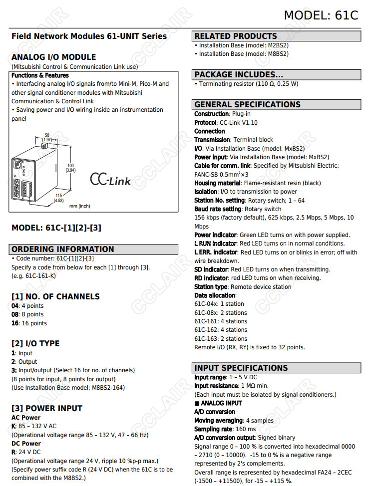 61C,61C-161-K,61C-041,61C-042,61C-043,61C-081,61C-082,CC-Link專用 61C-083,61C-161,61C-162,61C-163,作為mi
