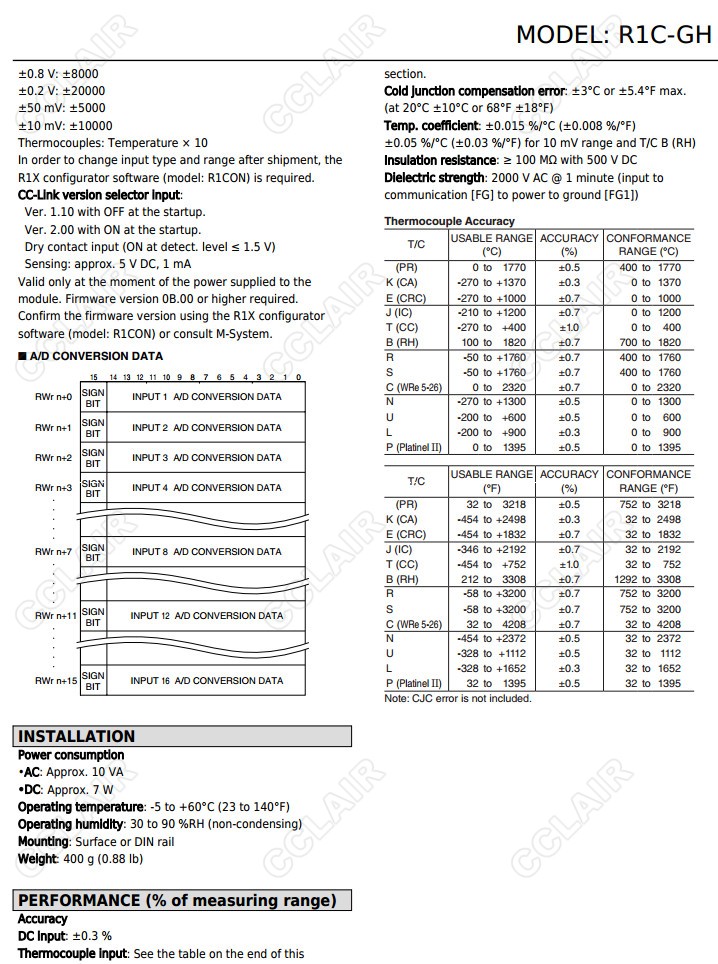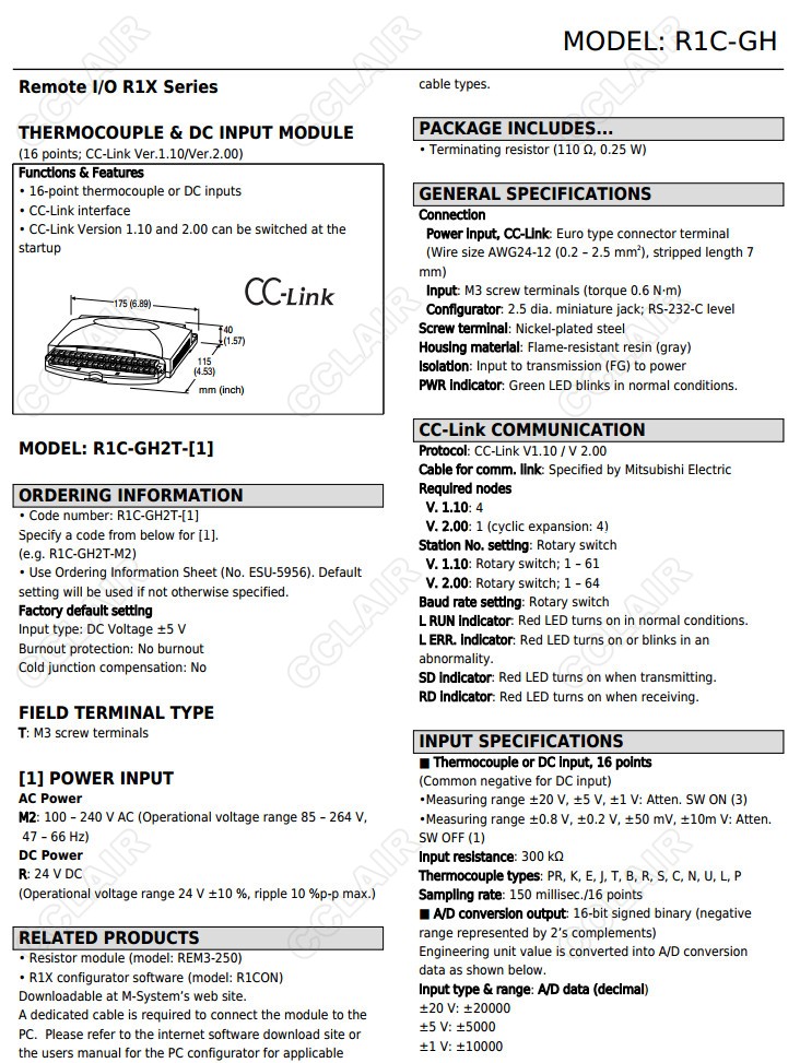 R1C-GH,R1C-GH2T-M2,R1C-GH2T-R,CC-Link用 直流/熱電偶 16點輸入模塊,R1D-GH,DeviceNet用 直流/熱電偶 16點輸入模塊