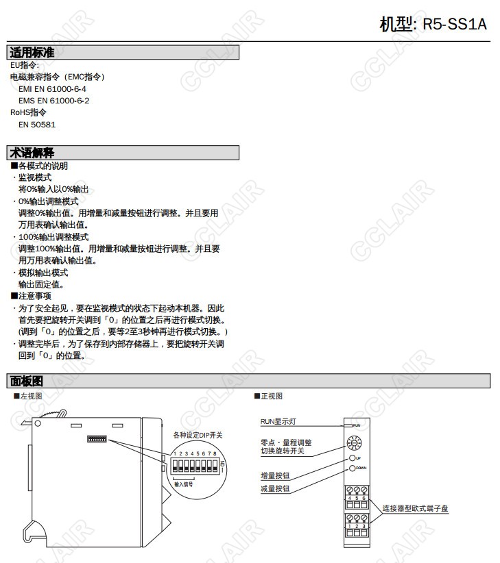 R5-SS1A,R5-SS1AW/Q,R5-SS1AS/Q直流電流信號輸入,輸入信號∶±40mA, ±20mA, ±1mA, 0~40mA, 0~20mA, 4~20mA, 0~1mA,輸出信號∶DC4~20mA