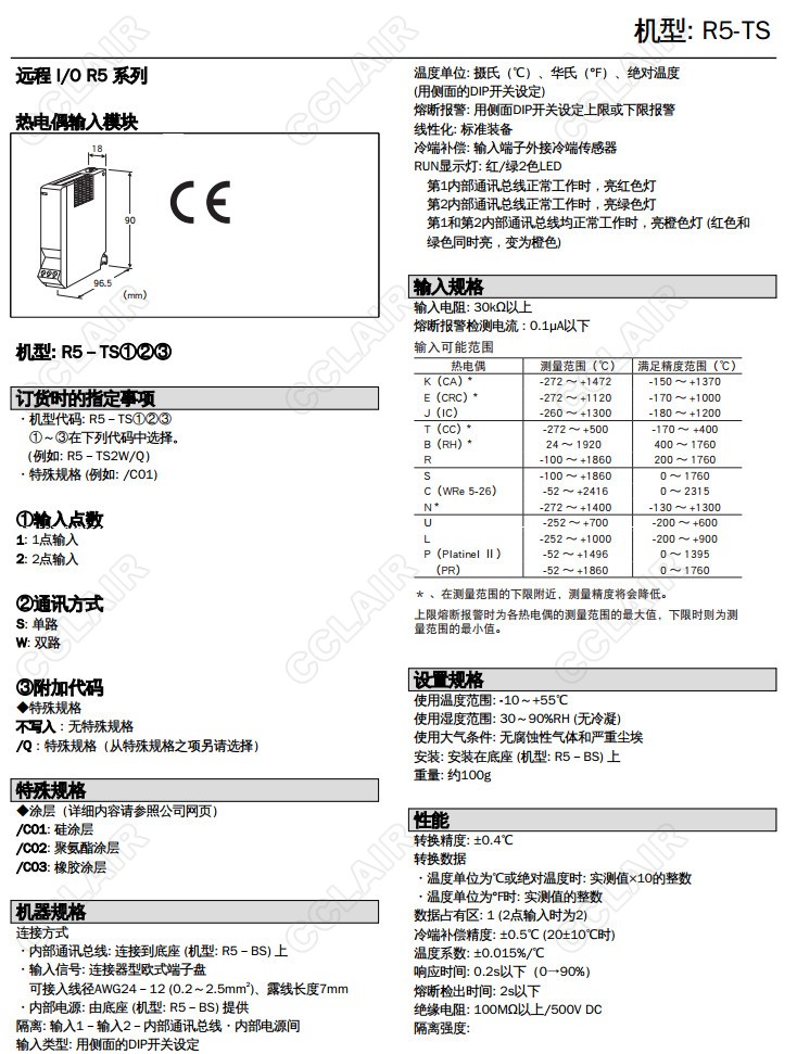 R5-TS/R5T-TS,R5-TS2W/Q,R5-TS1S,R5-TS1W,R5-TS2S,R5-TS2W熱電偶信號(hào)輸入