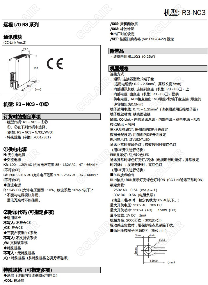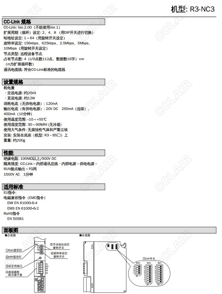 R3-NC3,R3-NC3-R/CE/Q,R3-NC3-N,R3-NC3-K3,R3-NC3-L3,CC-Link Ver.2通訊模塊
