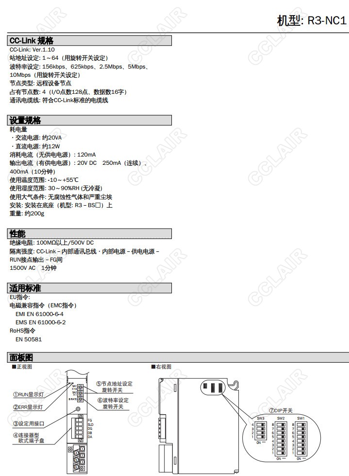 R3-NC1,R3-NC1-R/CE/Q,R3-NC1-N,R3-NC1-K3,CC-Link Ver.1; 模擬量信號(hào) 16點(diǎn)通訊模塊