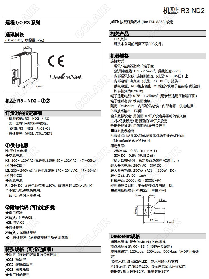 R3-ND2,R3-ND2-R/CE/Q,R3-ND2-N,R3-ND2-K3,DeviceNet 模擬量信號 32點通訊模塊R3-ND2-L3,R3-ND2-R,
