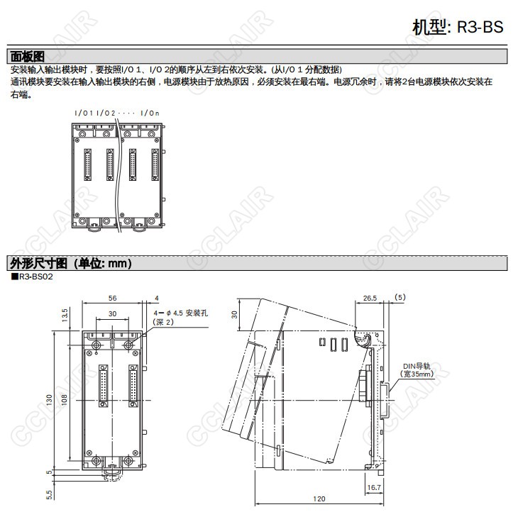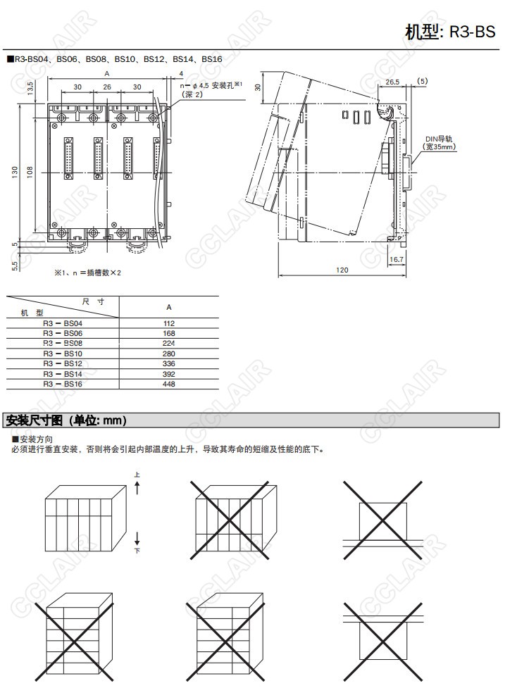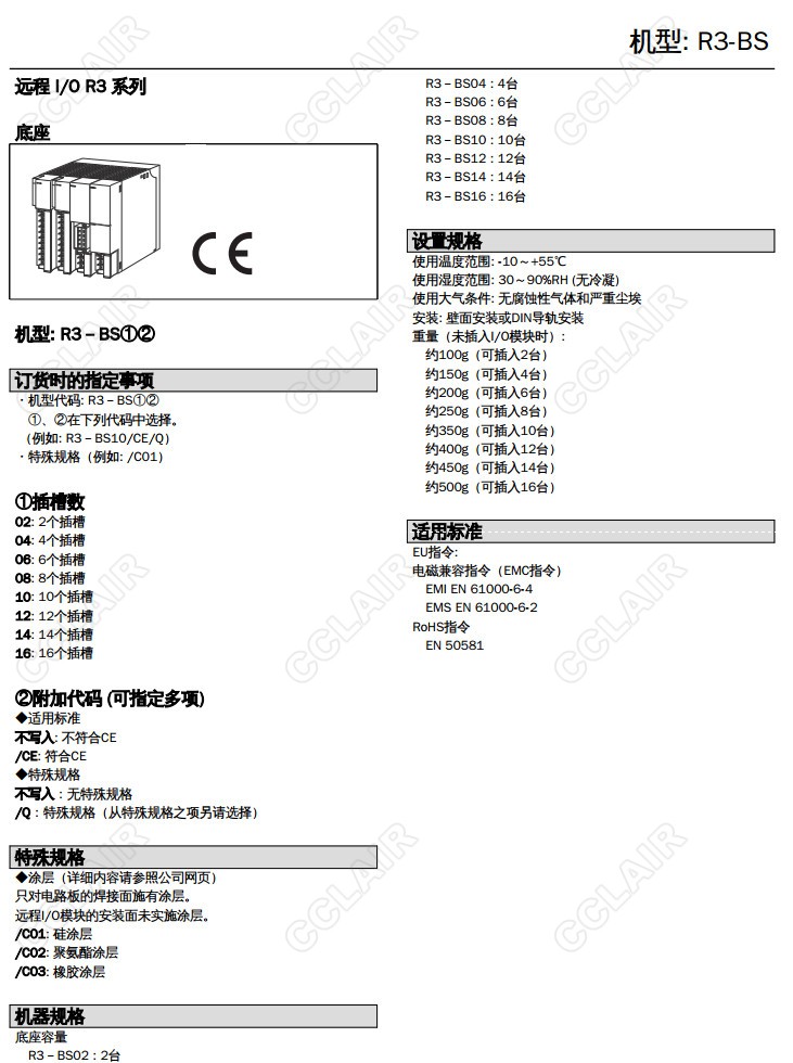 R3-BS,R3-BS10/CE/Q,R3-BS02,R3-BS04,R3-BS06,R3-BS08,R3-BS10,R3-BS12,2~16個模塊用底板R3-BS14,R3-BS16,