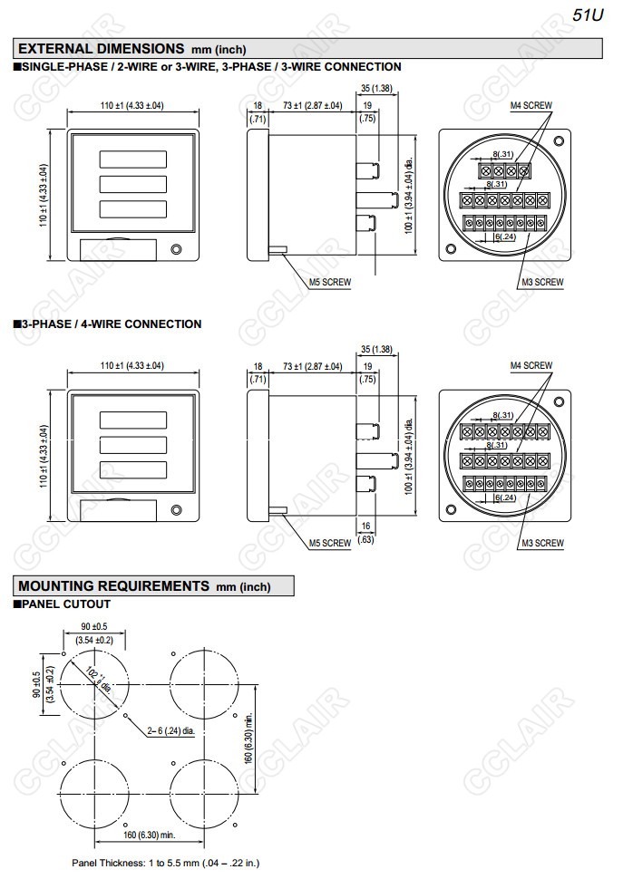 51U,51U-0,51U-1,51U-2,51U-3,51U-4,配電盤嵌入式多功能電量表