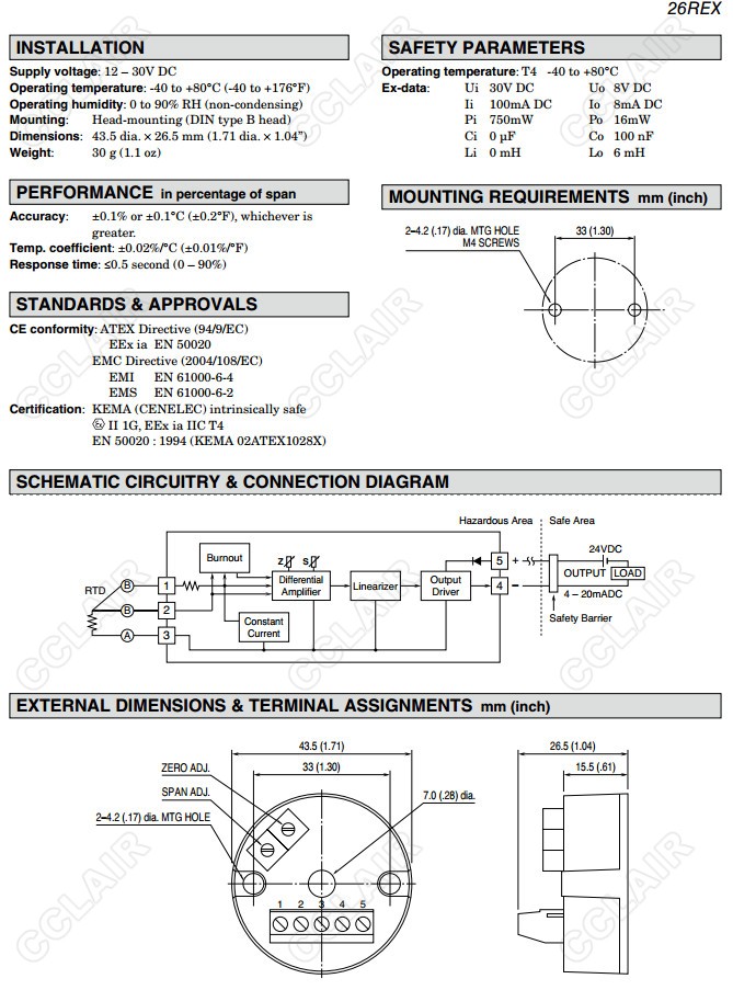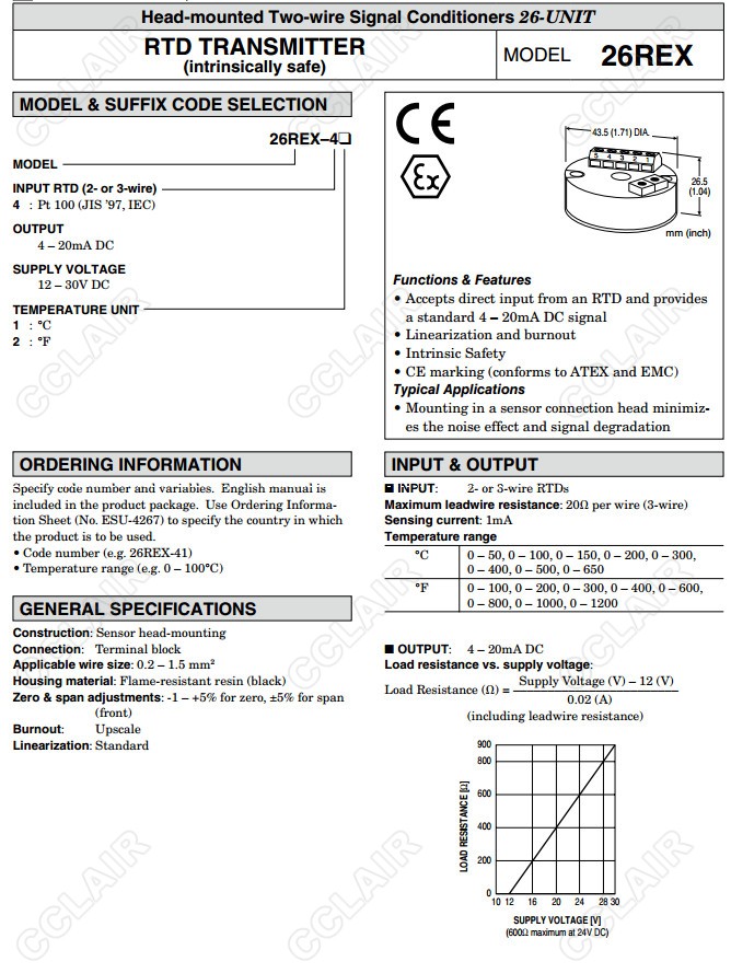 26REX,26REX-41,26REX-42,熱電阻信號變換器(本質(zhì)安全型防爆)
