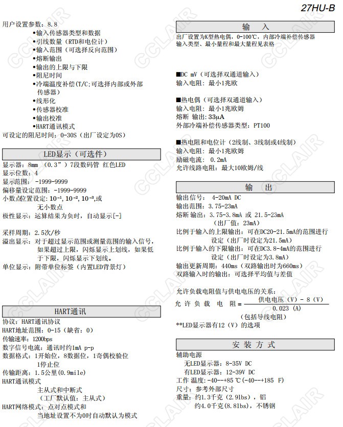 27HU-B,27HU-B-7652,CELENEC隔爆型防爆認(rèn)證 接線盒內(nèi)安裝型萬能輸入信號(hào)變換器