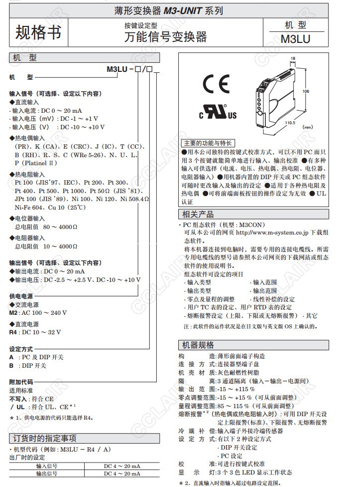 M3LU,M3LU-R4/A,M3LU-M2/A,M3LU-M2/AUL,M3LU-M2/B,M3LU-M2/BUL,能信號變換器(按鍵設定型)M3LU-R4/A,M3LU-R4/AUL,M3LU-R4/B,M3LU-R4/BUL,