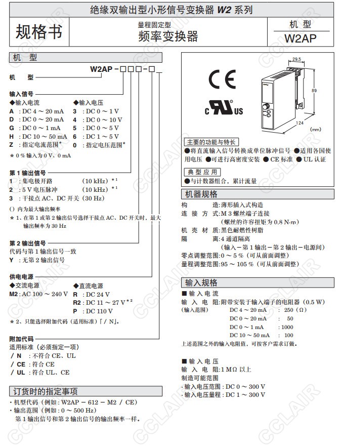 W2AP,W2AP-612-M2/CE,W2AP-A,W2AP-C,W2AP-G,W2AP-H,W2AP-Z,頻率變換器(量程固定型)