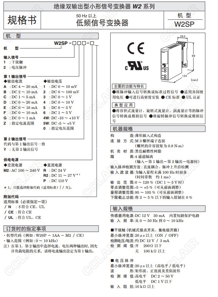 W2SP,W2SP-1AA-M1/CE,W2SP-1B,W2SP-1C,W2SP-1D,W2SP-1E,W2SP-1F,低頻信號變換器(50 Hz 以上)