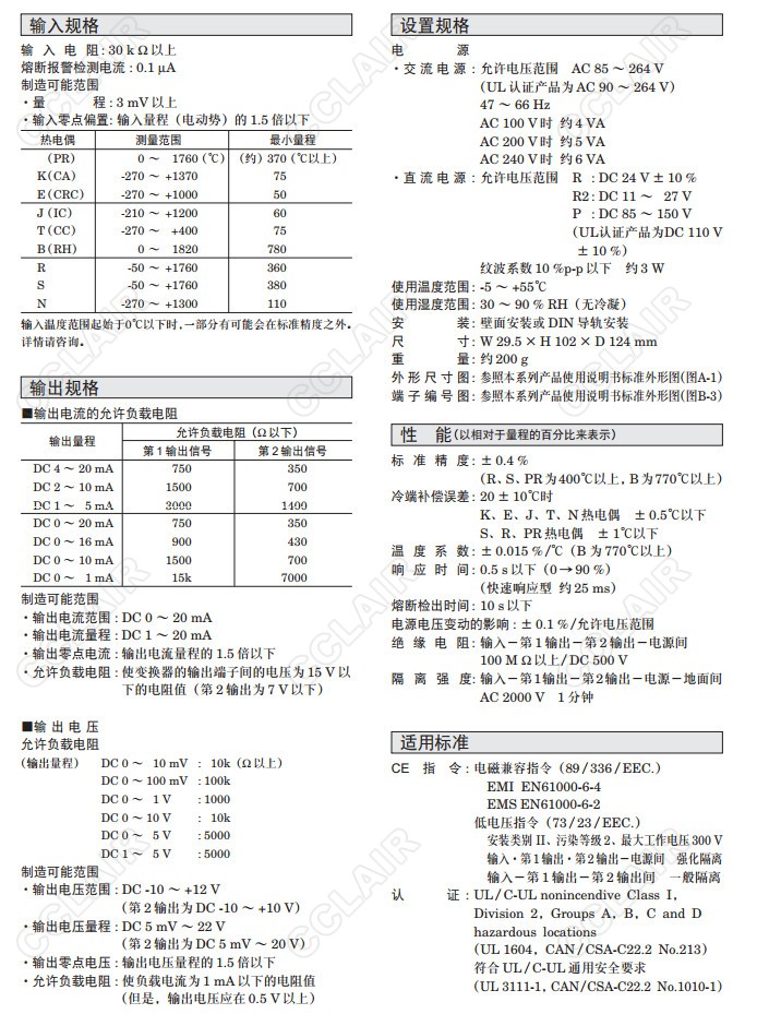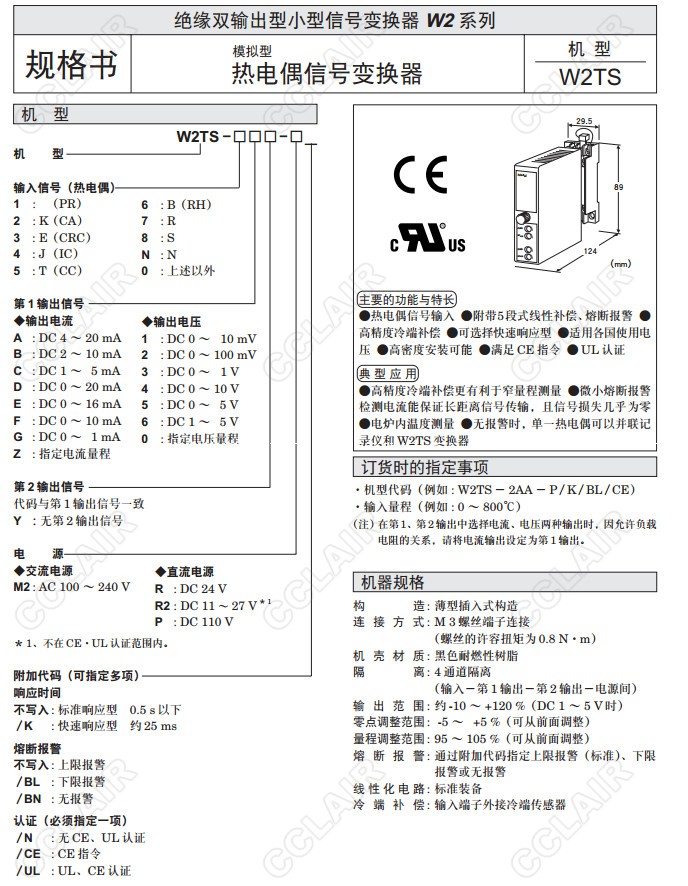 W2TS,W2TS-1,W2TS-2,W2TS-3,W2TS-4,W2TS-5,W2TS-6,W2TS-7,W2TS-8,熱電偶信號變換器(模擬型)W2TS-N,W2TS-0,