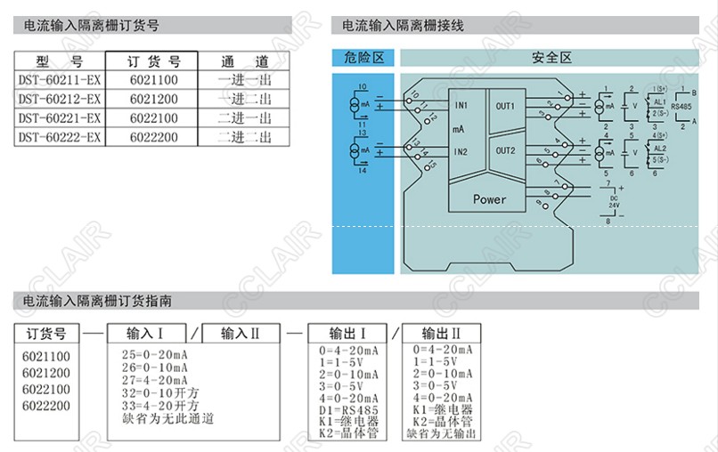 本產(chǎn)品給危險區(qū)的電流信號轉(zhuǎn)換成電壓、電流、RS485信號或開關(guān)量信號,從危險區(qū)隔離傳送到安全區(qū),該產(chǎn)品需獨(dú)立供電.