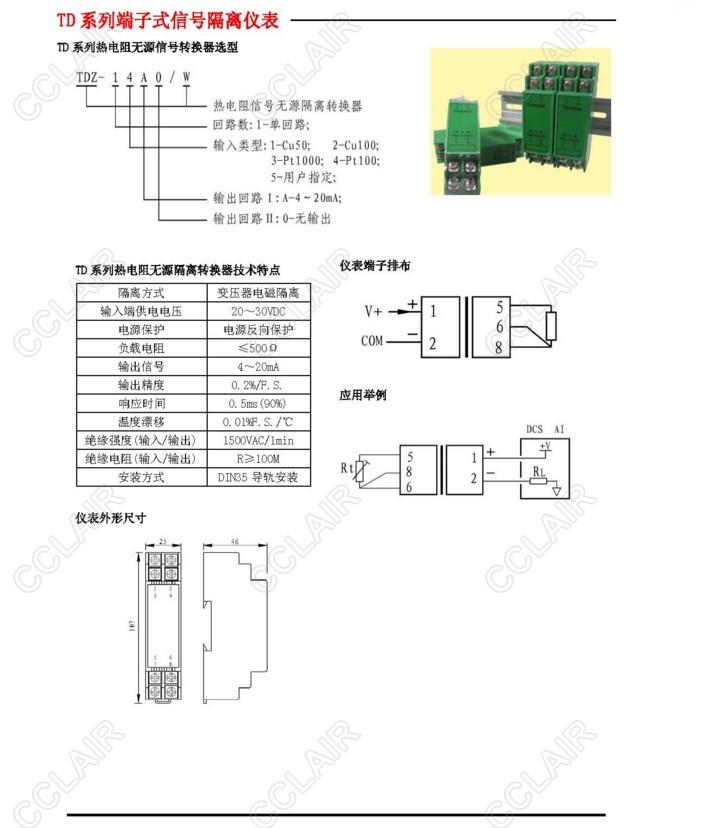 TDZ-11A0/W,TDZ-12A0/W,TDZ-13A0/W,TDZ-14A0/W,TDZ-15A0/W,熱電阻無源信號轉換器