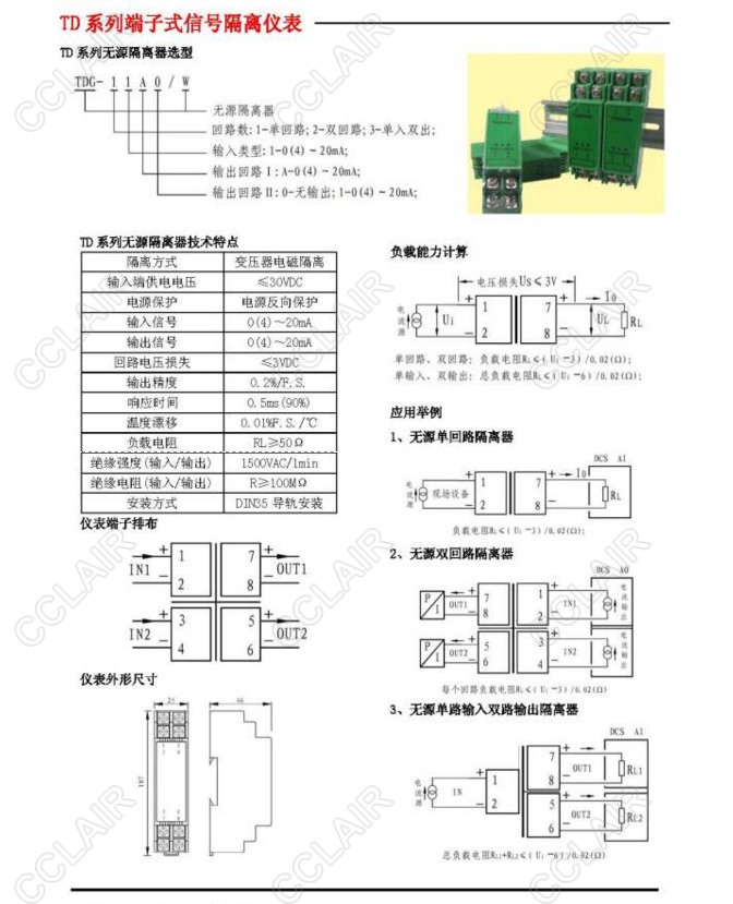 TDG-11A0/W,TDG-11A1/W,TDG-21A0/W,TDG-21A1/W,TDG-31A0/W,TDG-31A1/W,無(wú)源隔離器