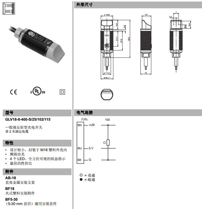 GLV18-8-400-S/25/102/115,漫反射型傳感器
