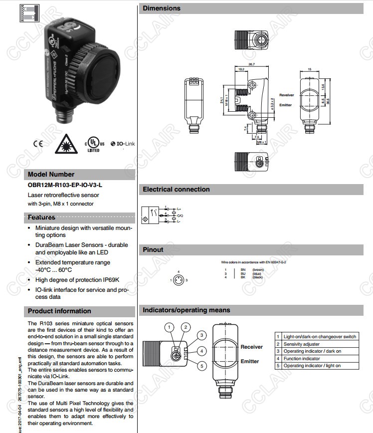OBR12M-R103-2EP-IO-V31-L,OBR12M-R103-EP-IO-V3-L,激光反射板傳感器