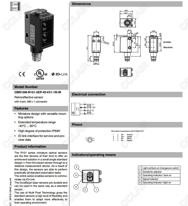 OBR10M-R101-2EP-IO-V31-1R-IR,反射板型光電開關(guān)