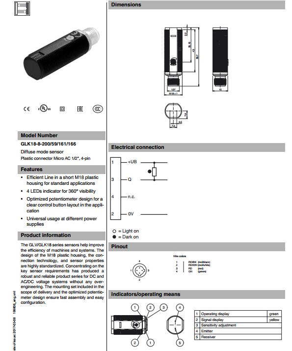 GLK18-8-200/59/161/166.漫反射型傳感器