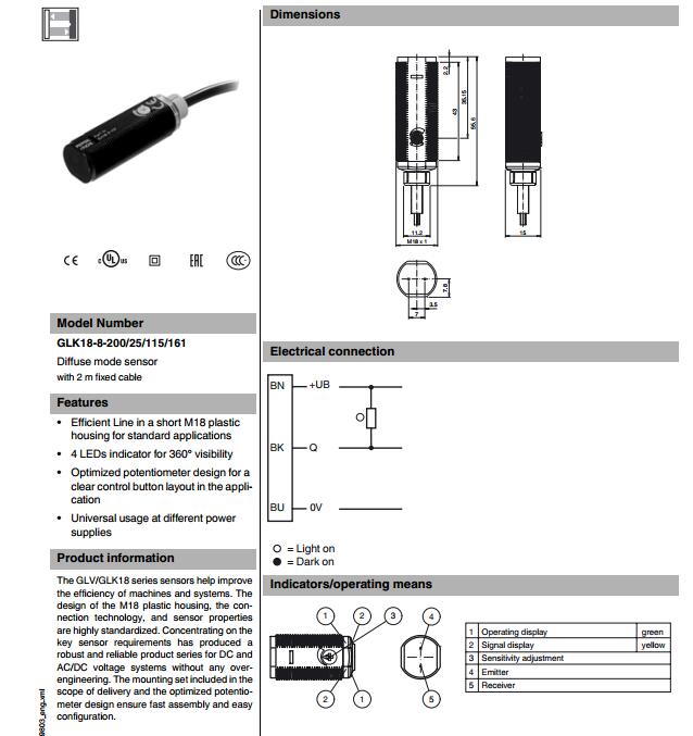 GLK18-8-200/25/115/161,漫反射型傳感器
