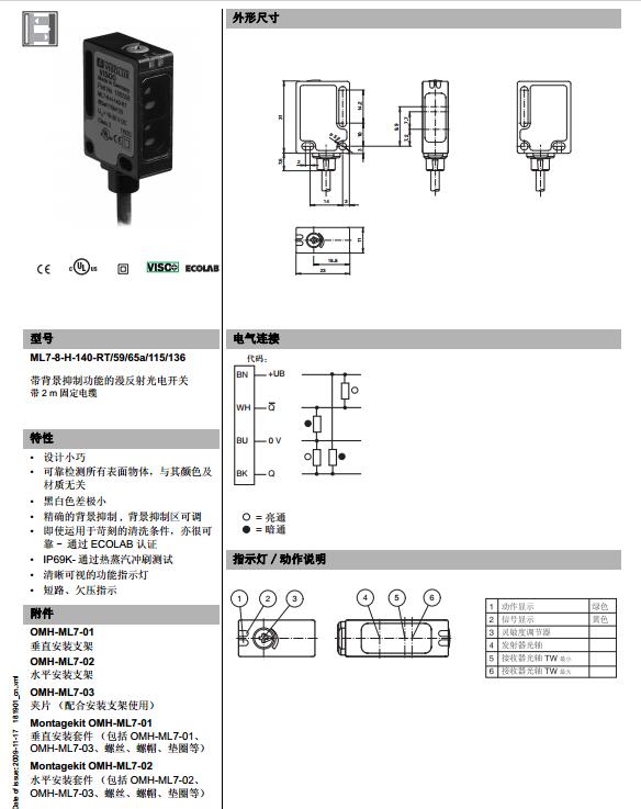 ML7-8-H-140-RT/59/65a/115/136,漫反射型傳感器