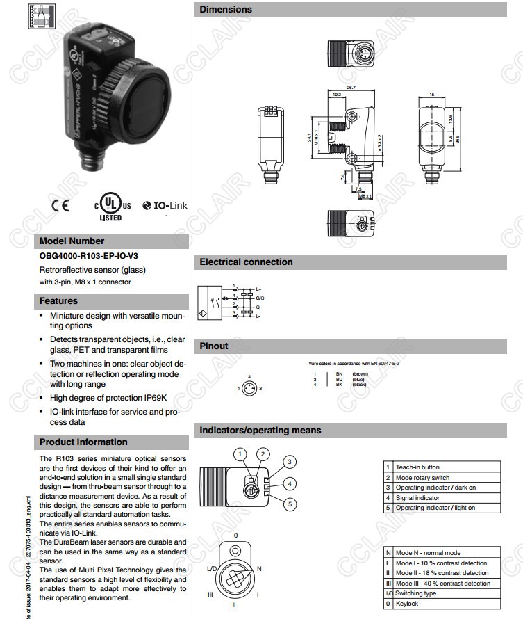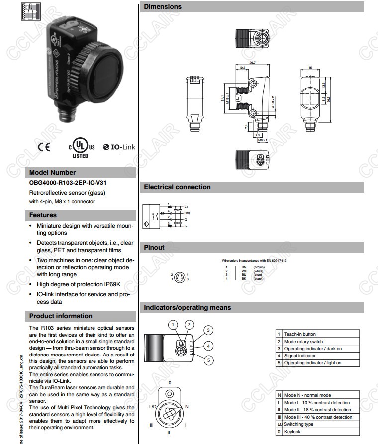 OBG4000-R103-2EP-IO-V31,OBG4000-R103-EP-IO-V3,反射板傳感器(玻璃)