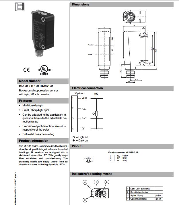 ML100-8-H-100-RT/95/102,漫反射型傳感器
