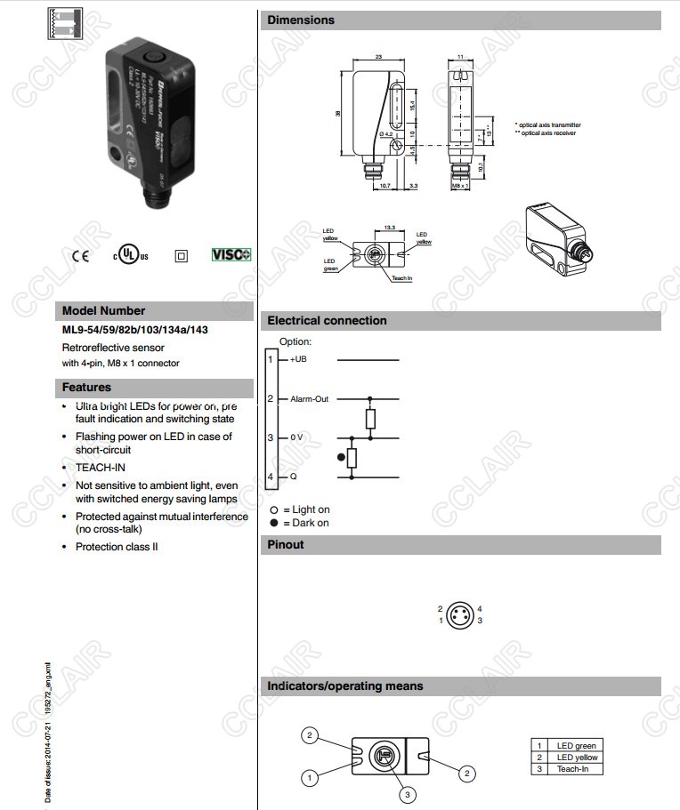 ML9-54/59/82b/103/134a/143,ML9-54/59/82b/103/143,反射板型傳感器