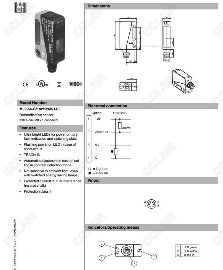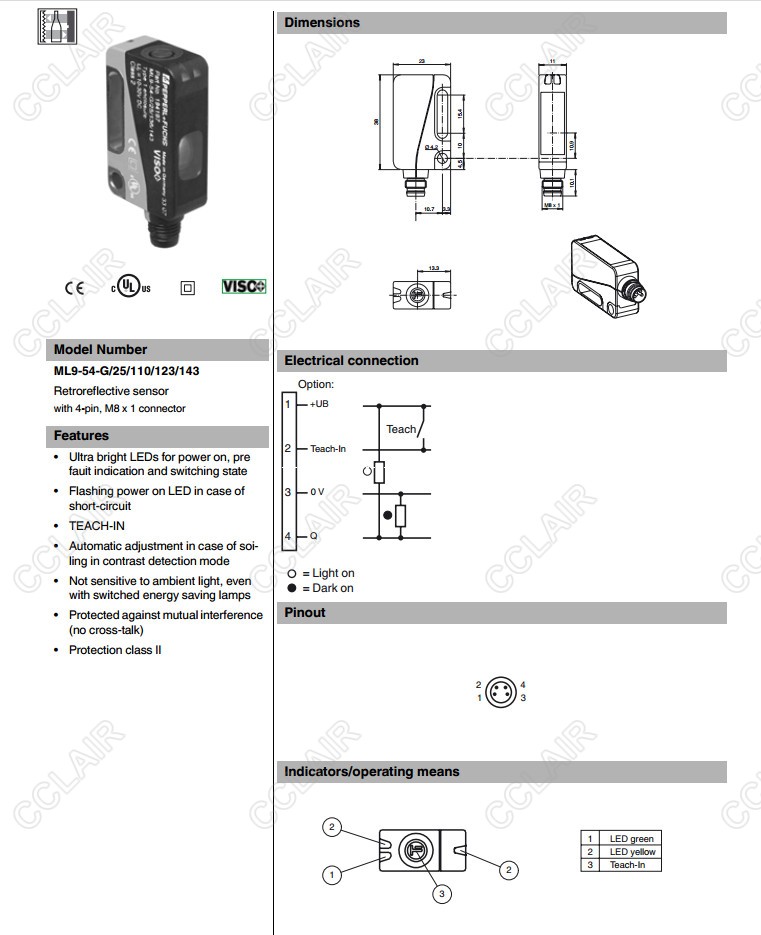 ML9-54-G/102/126b/143,ML9-54-G/25/110/123/143,反射板型傳感器