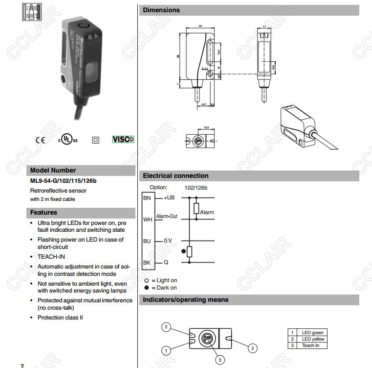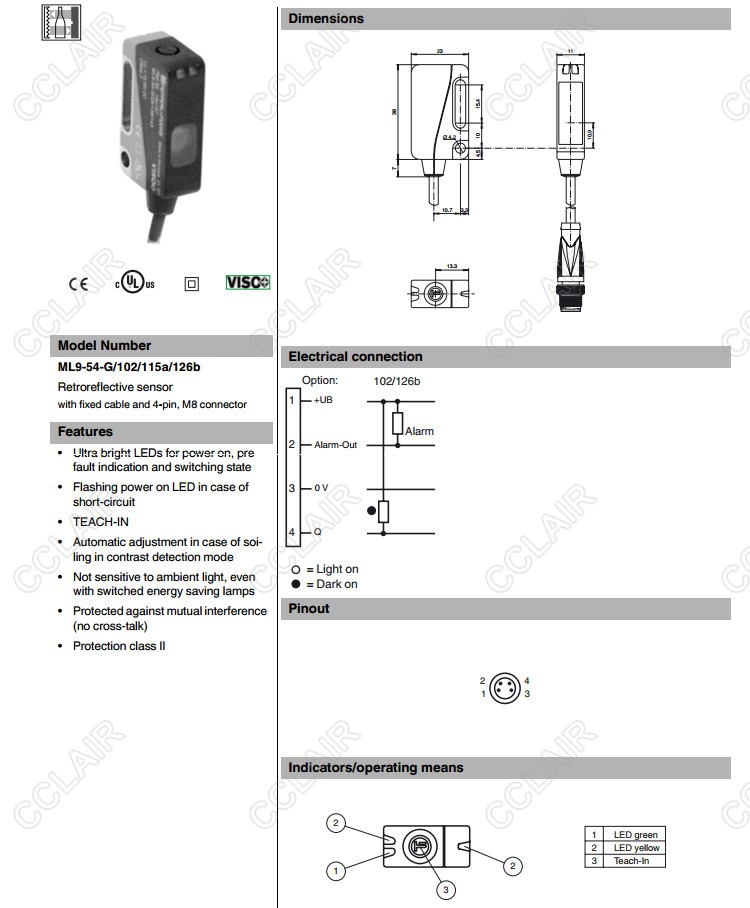 ML9-54-G/102/115/126b,ML9-54-G/102/115a/126b,反射板型傳感器