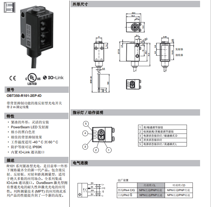 OBT350-R101-2EP-IO,漫反射型傳感器