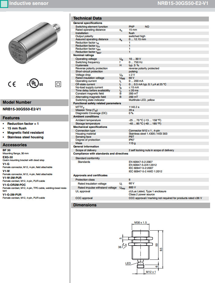 NRB15-30GS50-E2-V1感應(yīng)式傳感器