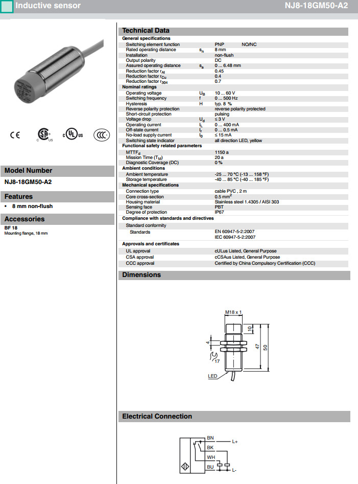 NJ8-18GM50-A2,NJ8-18GM50-A2-10M感應式傳感器