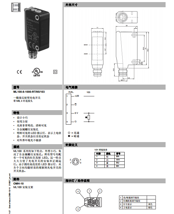 ML100-8-1000-RT-95-103,漫反射型傳感器.