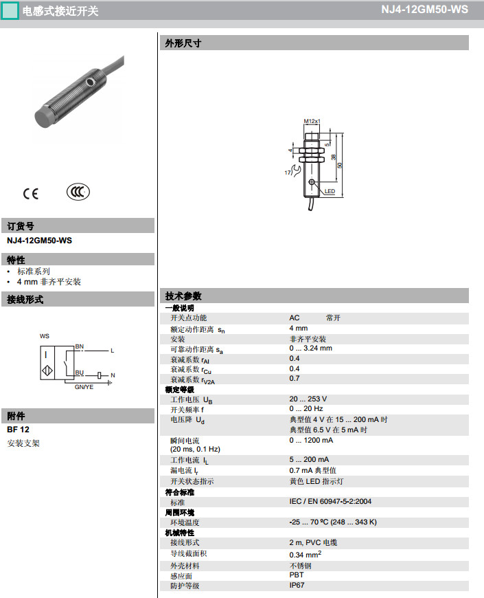 NJ4-12GM50-WO,NJ4-12GM50-WS,NJ4-12GM50-WS-10M感應(yīng)式傳感器