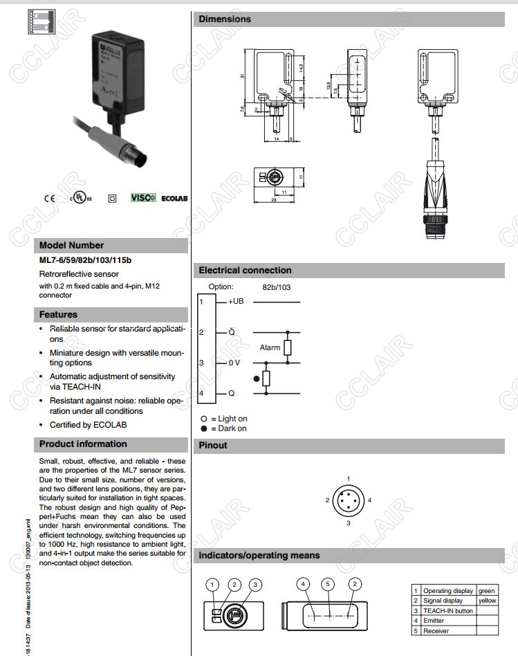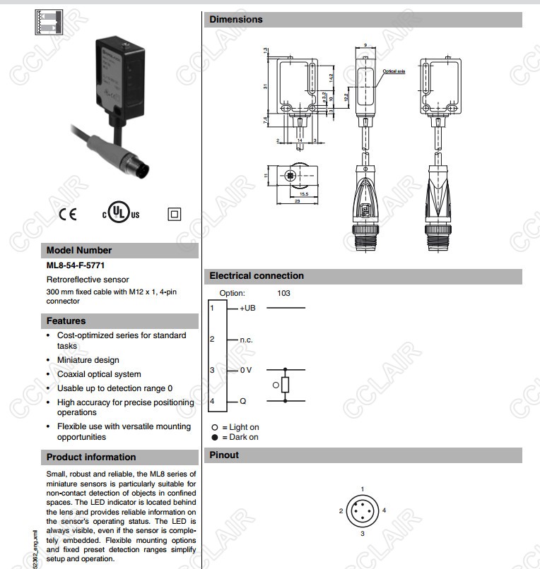 ML7-6/59/82b/103/115b,ML8-54-F-5771,反射板型傳感器