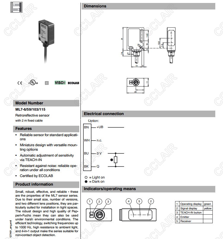 ML7-6/59/102/115,ML7-6/59/103/115,反射板型傳感器
