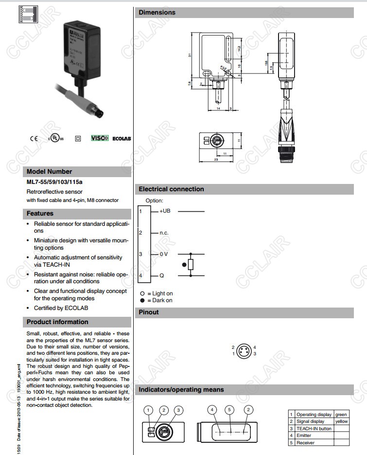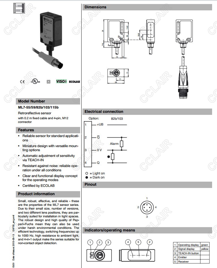 ML7-55/59/103/115a,ML7-55/59/82b/103/115b,反射板型傳感器
