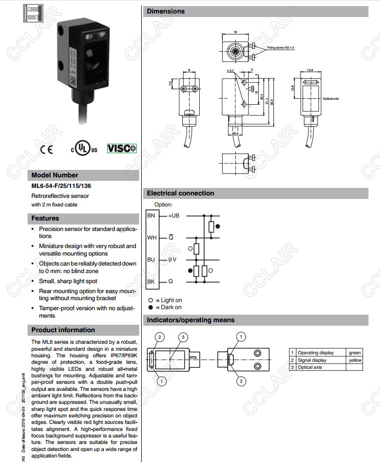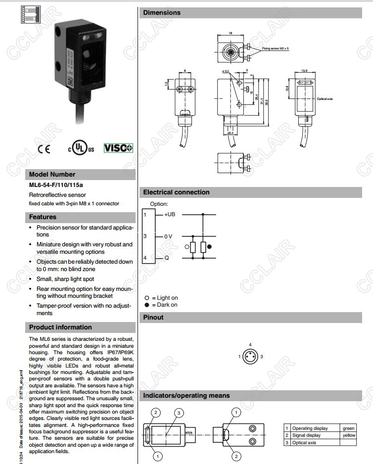 ML6-54-F/110/115a,ML6-54-F/25/115/136,反射板型傳感器