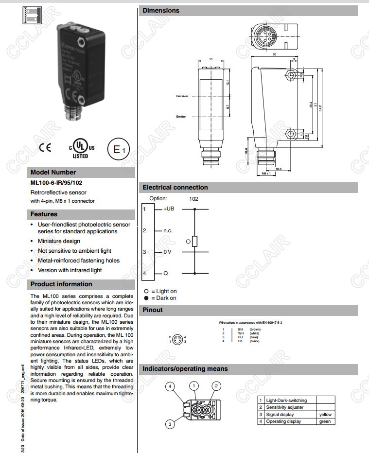 ML100-6-IR/95/102,反射板型傳感器