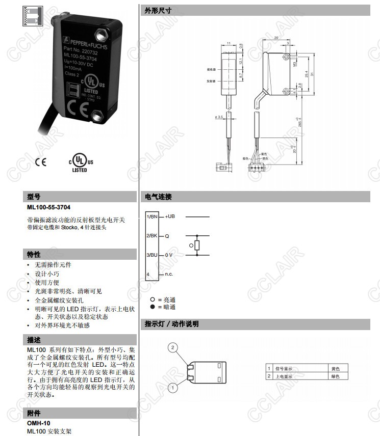 ML100-55-3704,反射板型傳感器