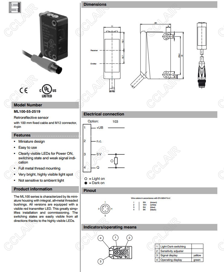 ML100-55-2519,反射板型傳感器