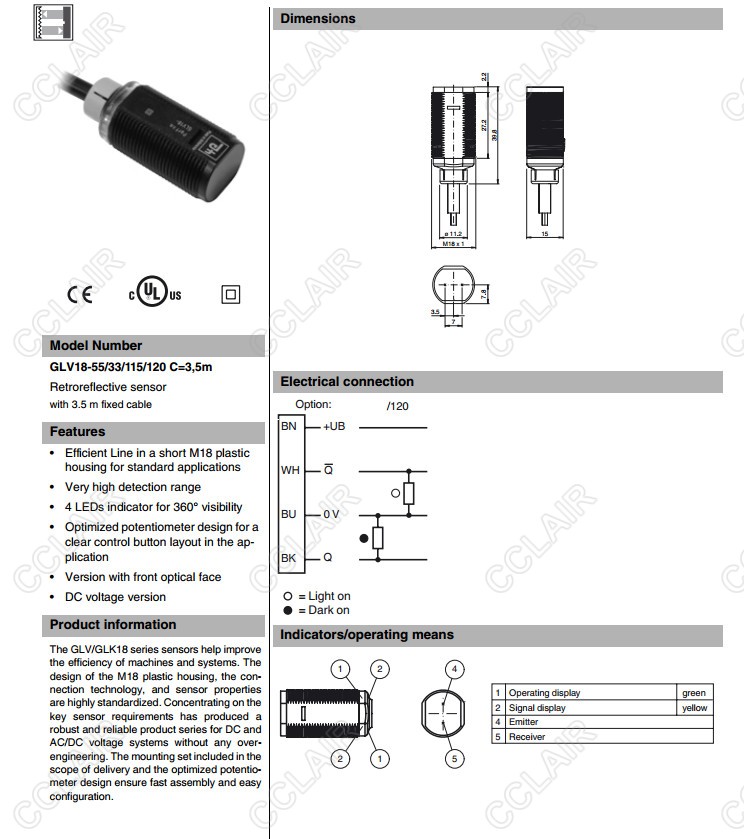 GLV18-55/115b/120,GLV18-55/33/115/120 C=3/5m,反射板型傳感器