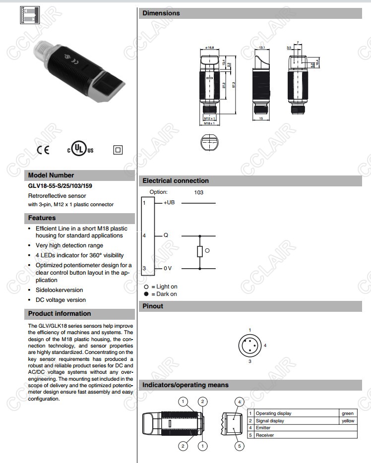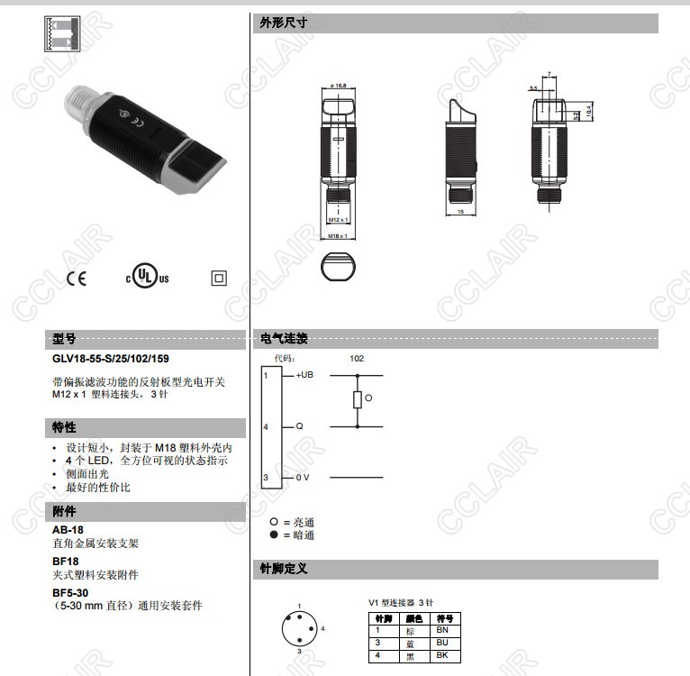 LV18-55-S/25/102/159,GLV18-55-S/25/103/159,反射板型傳感器