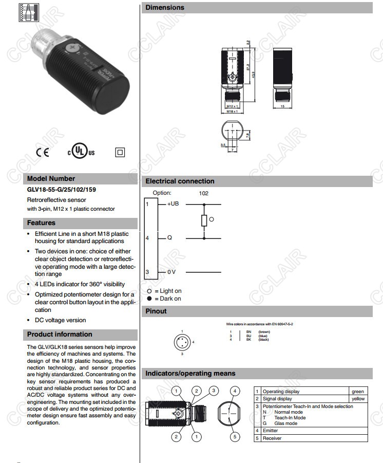 GLV18-55-G/25/102/159,反射板型傳感器