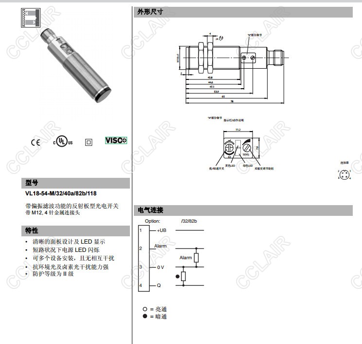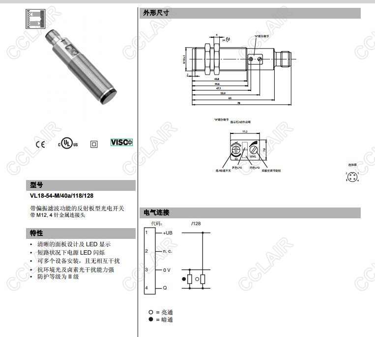 VL18-54-M/32/40a/82b/118,VL18-54-M/40a/118/128,反射板型傳感器