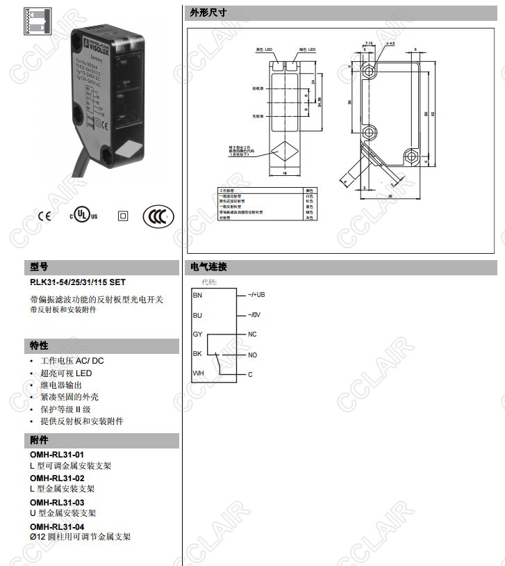 RLK31-54/25/31/115/SET,反射板型光電開關(guān)