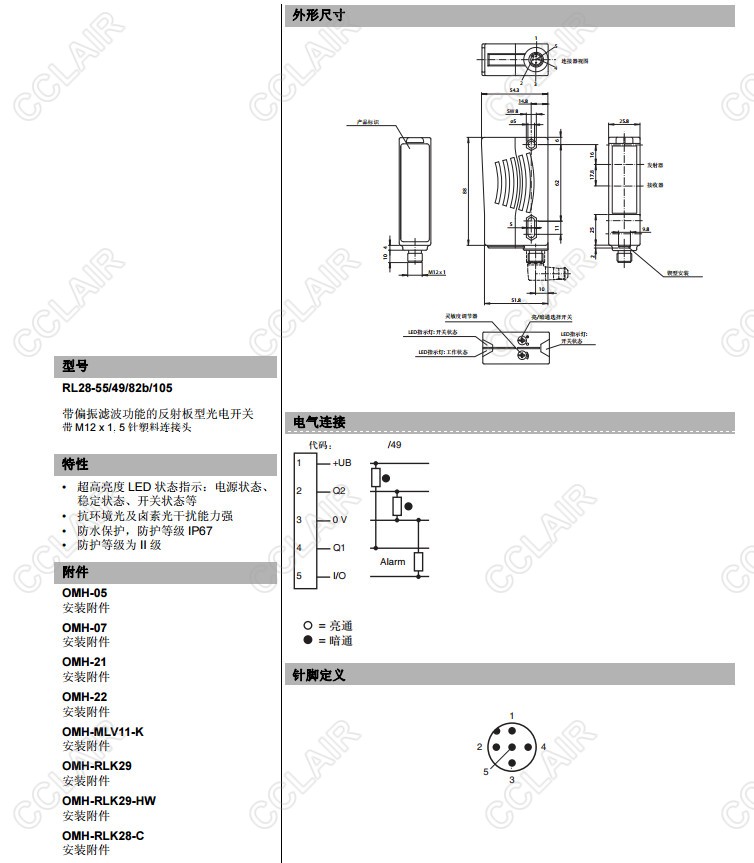 RL28-55/47/73c,RL28-55/47/76a/105,RL28-55/49/82b/105,反射板型傳感器